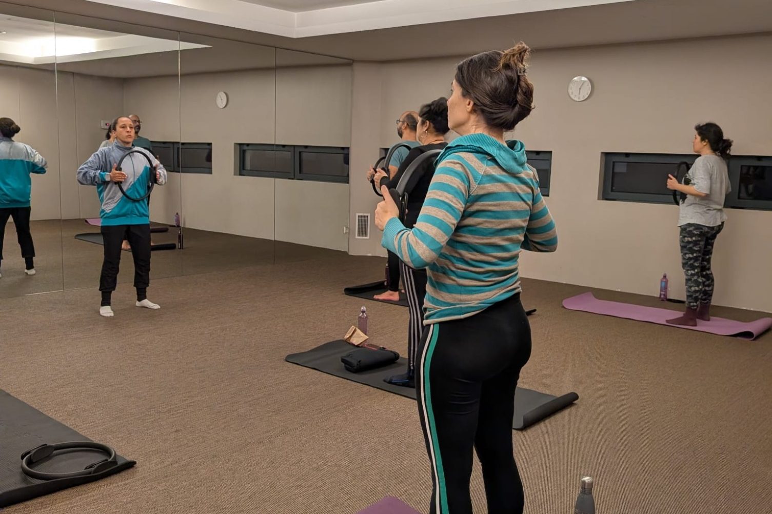 Aulas de Mat Pilates em grupo, com ou sem acessórios, 45 minutos (máx. 10 pessoas), focadas em melhorar sua saúde física e mental, respeitando sua individualidade.